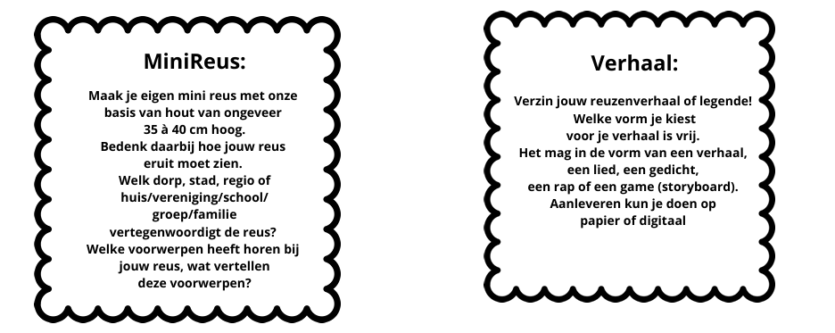 - Je mag het verhaal op papier (inleveren met je reus) of digitaal insturen